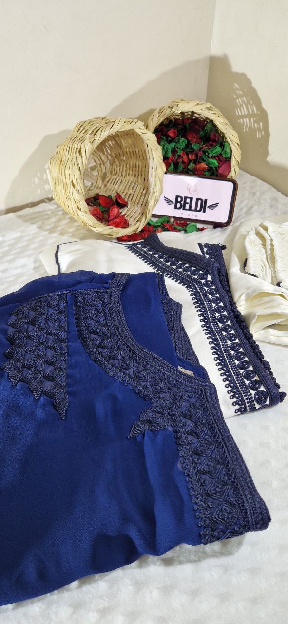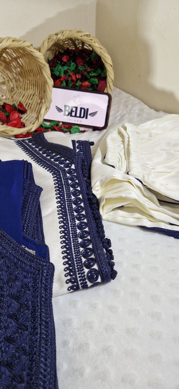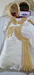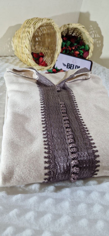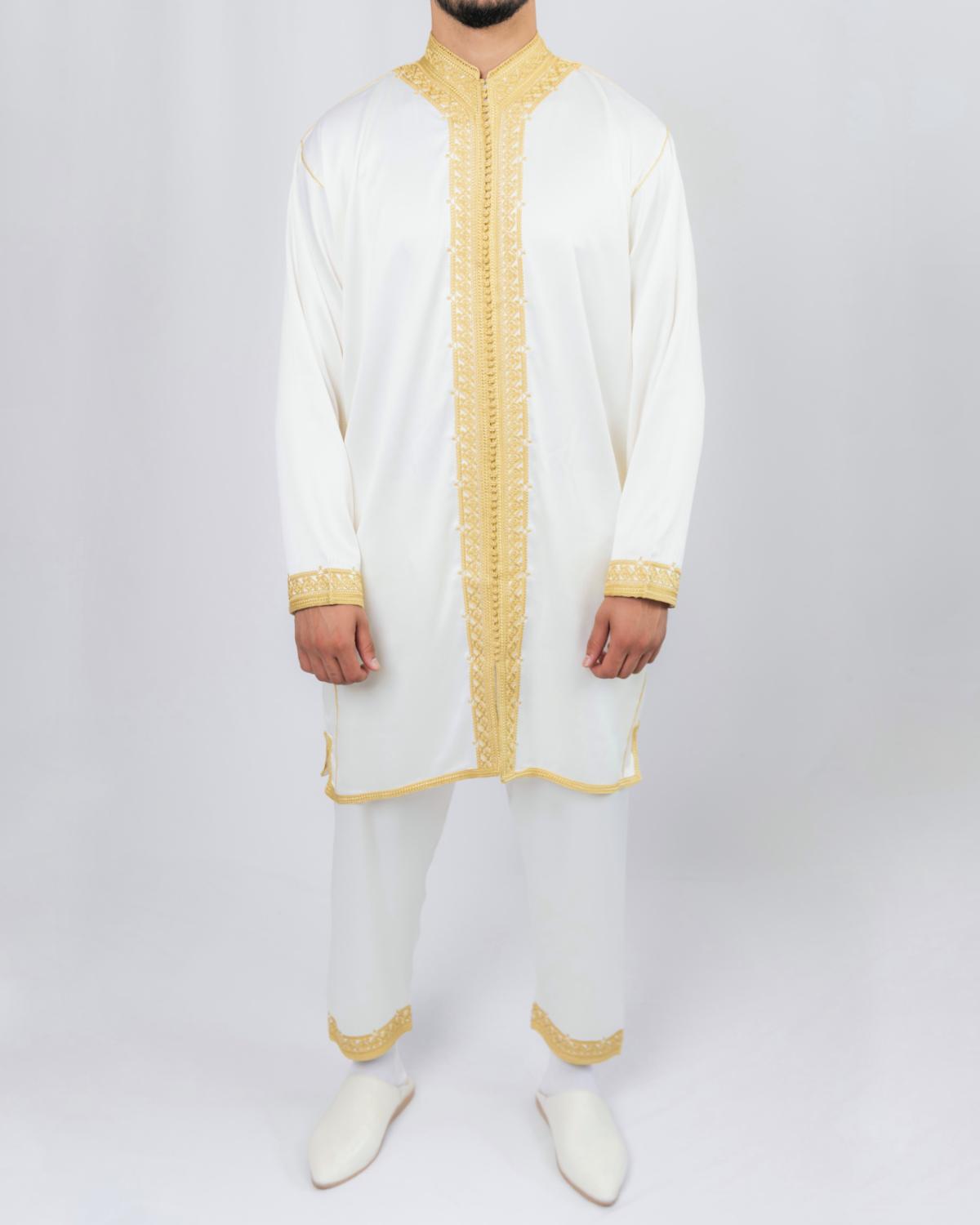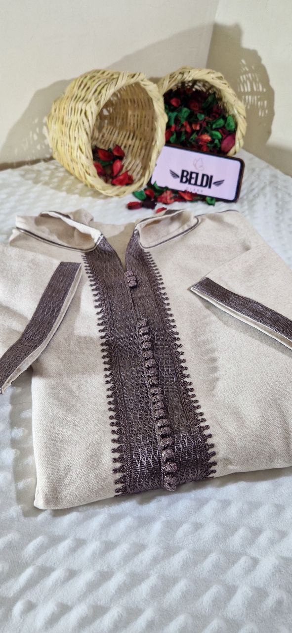 ثلاث قطع متناسقة، قماش مريح، وخياطة نظيفة تعكس جودة اللباس التقليدي كما يجب أن يكون.