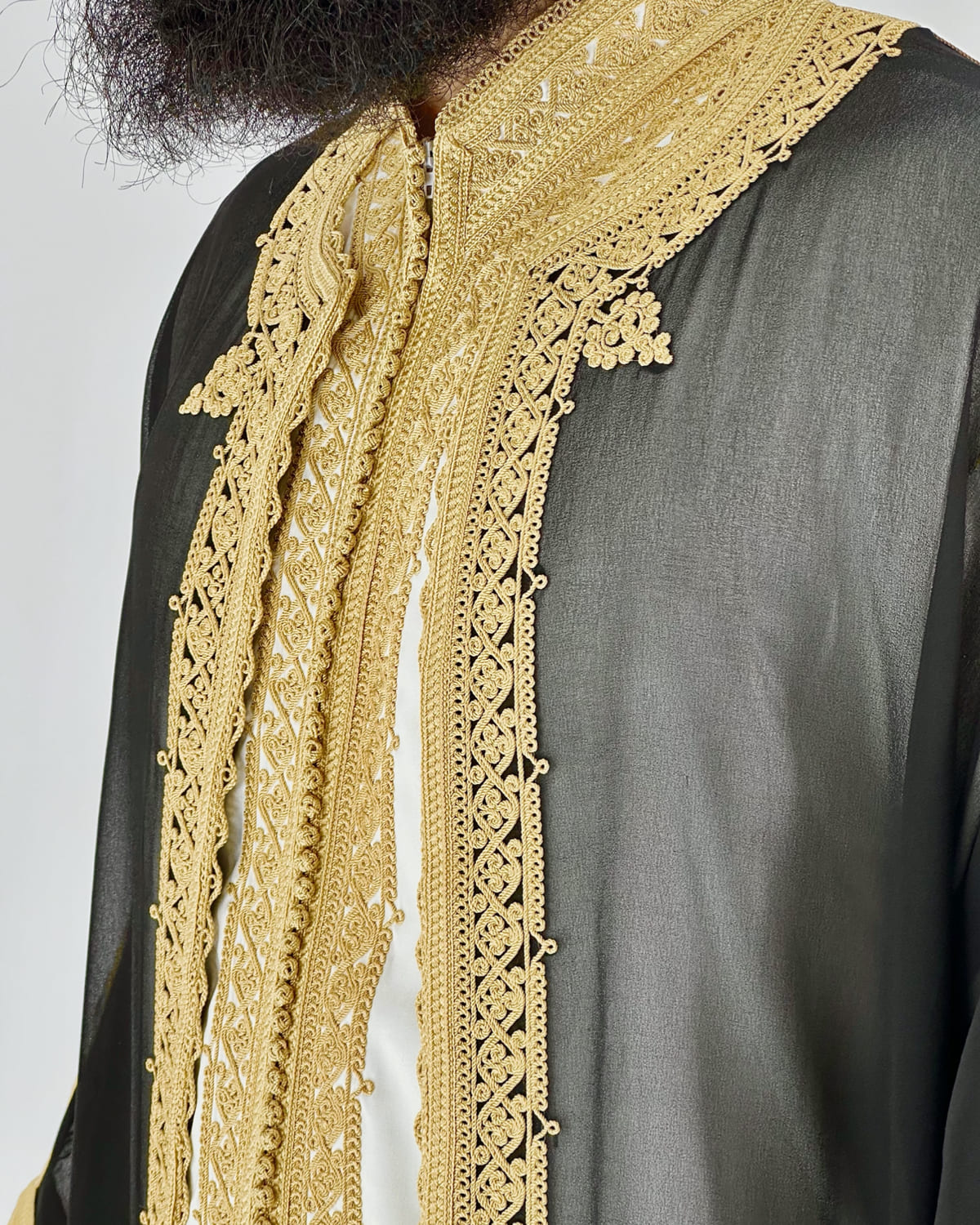 جبادور مغربي رجالي من ثلاث قطع، مخدوم بعناية وبجودة عالية، مخصص للاستعمال اليومي والمناسبات.